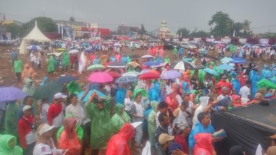DEPOK, SJNews.com, – Meski diguyur hujan dan penuh dengan lumpur, tak menyurutkan peserta yang ingin menyaksikan perayaan hari jadi Partai Gerindra ke – 15 tahun.