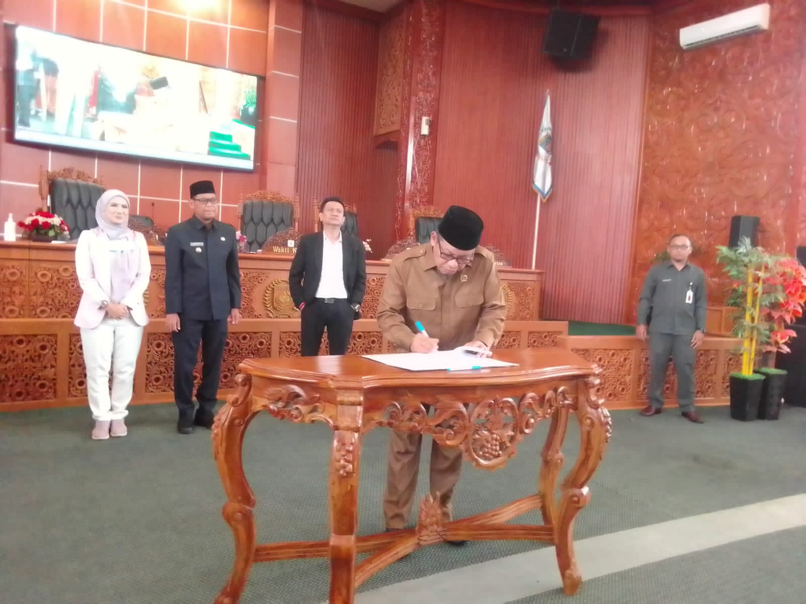 Ketua DPRD Kota Depok sampaikan soal daftar kehadiran anggota DPRD Kota Depok, yang hadir dalam rapat Paripurna LKPJ Walikota Depok berdasarkan catatan daftar dari 50 anggota yang hadir sebanyak 29 orang artinya melebihi setengah dari jumlah anggota DPRD Kota Depok. Sidang rapat Paripurna sesuai pasal 147 ayat 1 huruf C, tentang peraturan dan tata tertib DPRD Kota Depok maka rapat dinilai cukup korum, dan kami buka dan terbuka untuk umum, Jumat (31/3/2023)