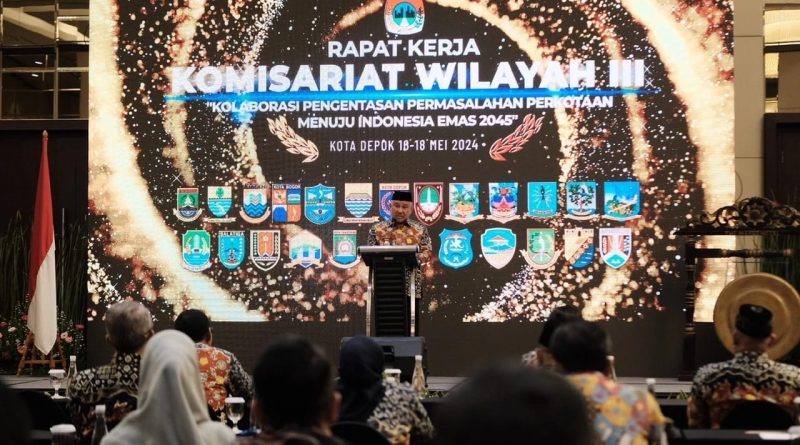 Rapat Kerja Komisariat Wilayah (Rakerkomwil) III Asosiasi Pemerintah Kota seluruh Indonesia (APEKSI) di Kota Depok di Ballroom Margo Hotel, Jumat (17/05/24).