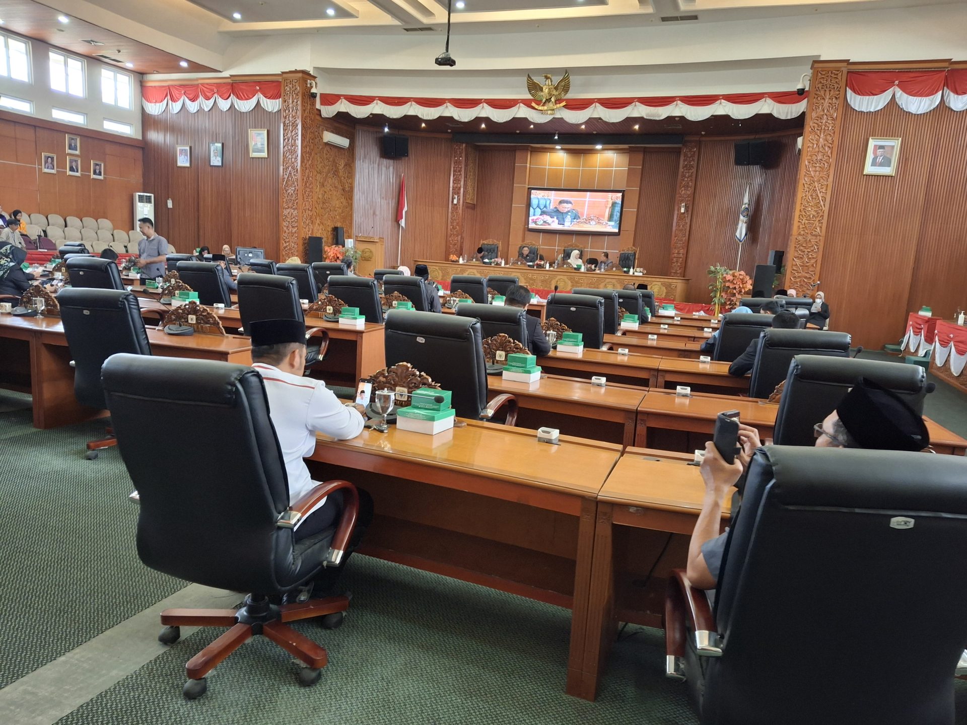 Com,- DPRD Kota Depok menggelar rapat paripurna dalam rangka persetujuan DPRD Terhadap perubahan Kebijakan Umum Anggaran (KUA) dan Priorotas Plafon Anggaran Sementara (PPAS) Tahun Anggaran 2024 di Ruang Sidang, Grand Depok City, Kota Depok. (12/08/24).