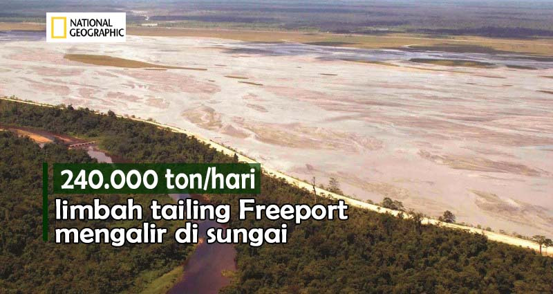 PT Freeport Indonesia menjadi perusahaan tambang emas dan tembaga terbesar di dunia, sekaligus penyumbang kerusakan hutan tropis di Papua Tengah. Limbah buangan material tambang usai diambil konsentratnya dialirkan ke sungai.
