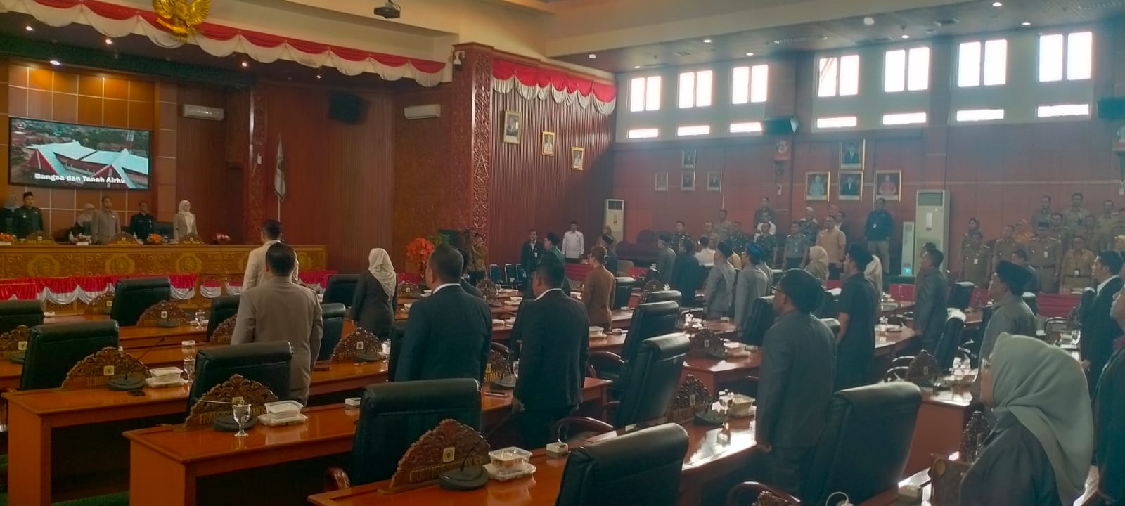 Acara ditutup dengan lagu padamu negri, kami berbakti dengan penuh harapan bersama agar seluruh pembahasan dapat menghasilkan kebijakan daerah yang baik untuk ke maslahat semua pihak. (By)