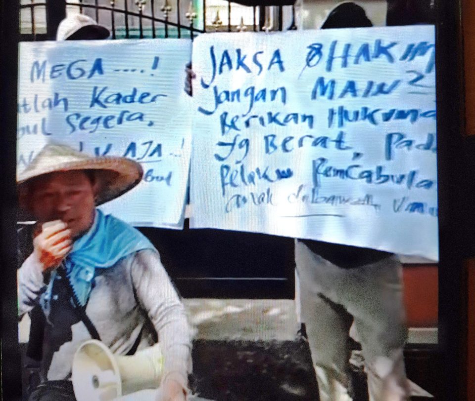 Suara Jabar News Com (Depok) – Aliansi Masyarakat Anti Cabul berunjuk rasa di depan kantor Pengadilan Depok, Senin (21/7/2025).