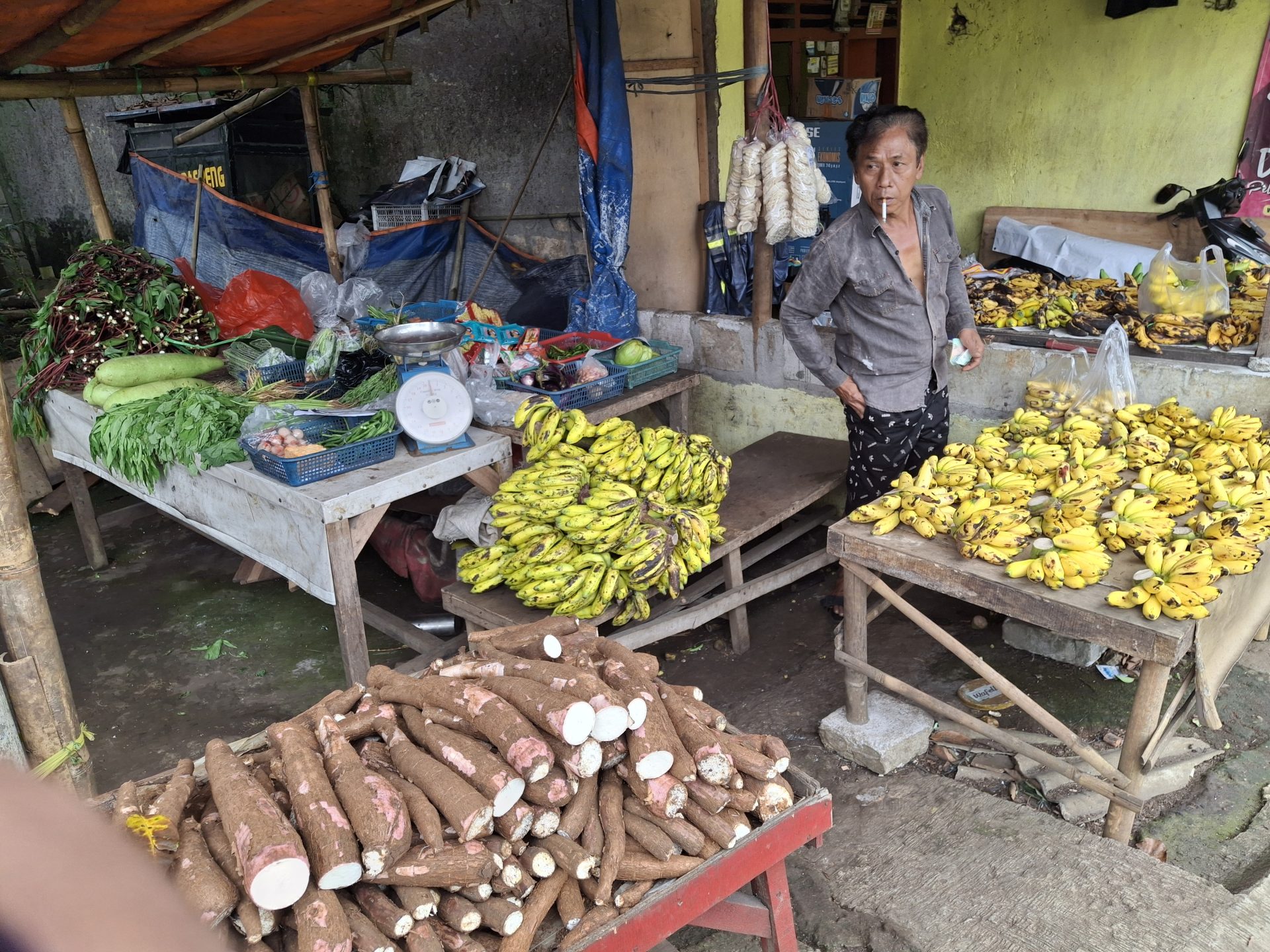 Suara Jabar News, Com (Cibinong) – Di tengah pesatnya pembangunan dan menjamurnya toko-toko serta pasar modern, kisah tentang kegigihan masih bisa kita temukan di sudut-sudut jalanan. Salah satunya adalah Udin (53), seorang pedagang sayur, pisang, dan singkong yang telah 15 tahun setia berjualan di Jalan Gang Kancil, RT 03/07 Kelurahan Tengah Cibinong.