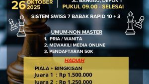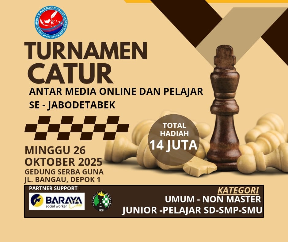 Turnamen Catur Perorangan Non Master se-Jabodetabek memperebutkan Piala PWOIN. Sebanyak 173 pecatur kategori senior dan junior telah mendaftar, siap bertanding di Gedung Serba Guna Depok 1, Jalan Bangau Raya, pada Minggu 26 Oktober 2025 dalam rangka memperingati hari sumpah pemuda.