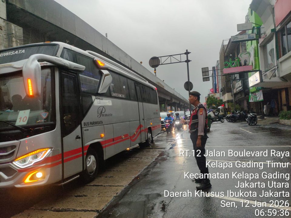 Suara Jabar News, Com (Jakarta) -Kesiapsiagaan Polsek Kelapa Gading Polres Metro Jaya Jakarta Utara melakukan monitoring intensif dalam menangani dampak hujan lebat yang terjadi pada Senin pagi, (12/01/ 2026).